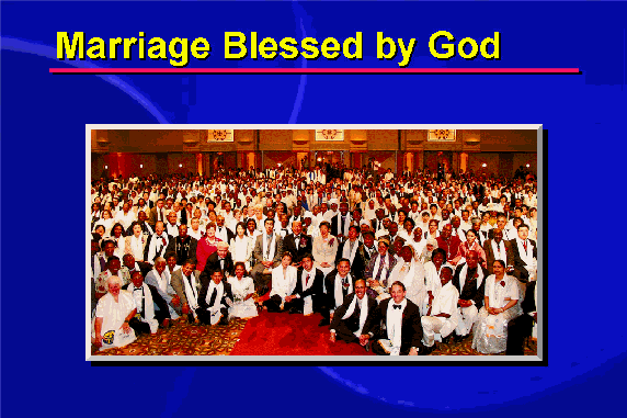 God's Blessing is absolutely public. That Blessing is not for the individual or family only, nor for a nation only, nor for the world only. God's Blessing is for the entire cosmos. In order for you to become perfect Adam and Eve, fulfilling the purpose of creation, you must get married.