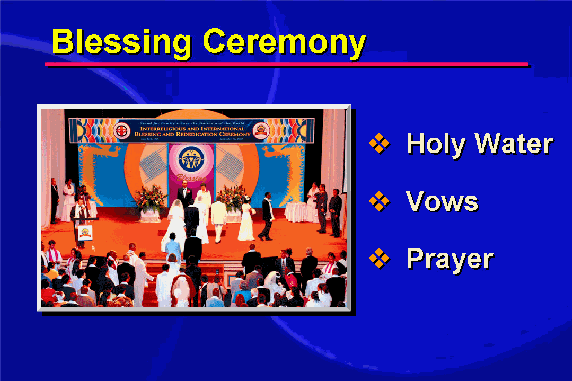 The Blessing Ceremony conducted by Reverend and Mrs. Moon is on a very different level from a secular marriage ceremony.
