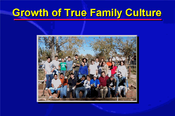 The difference after the Blessing is that the couple is working upon a greater spiritual foundation for marriage and family life, and is part of an emerging "marriage culture." This is a culture which places true family values at the center of social life. The continued expansion of this community of families offers hope and vitality for the global human family and contributes to the emergence of a world of love and peace.