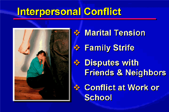 Some disputes arise from opposing interests, while others may come from envy, resentment, jealousy or even irritation caused by ordinary differences among people. Conflicts range in intensity from feelings of animosity to verbal aggression to physical violence.
