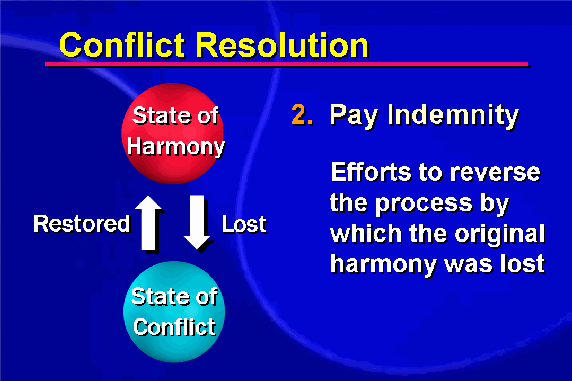 Conflict resolution requires remedial action, practicing what Reverend Moon calls the "Principle of Indemnity." By this we mean efforts, or indemnity conditions, made to reverse the process by which the original harmony was lost. Let's make an analogy using our physical body. If we get sick, it is because something in our body has gotten out of balance. Something is not working properly.