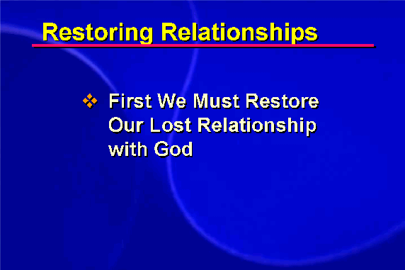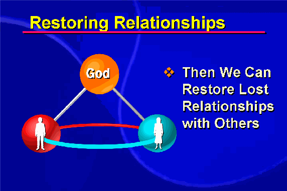 Through the misuse of love, human beings lost their original close relationship with the source of love: God. We became incapable of expressing God's love in our relationships with each other, inevitably bringing about conflict situations. To bring about substantial and lasting reconciliation in human relationships, we must first restore our lost relationship with God. Only then will we gain the spiritual power to restore our relationships with each other.