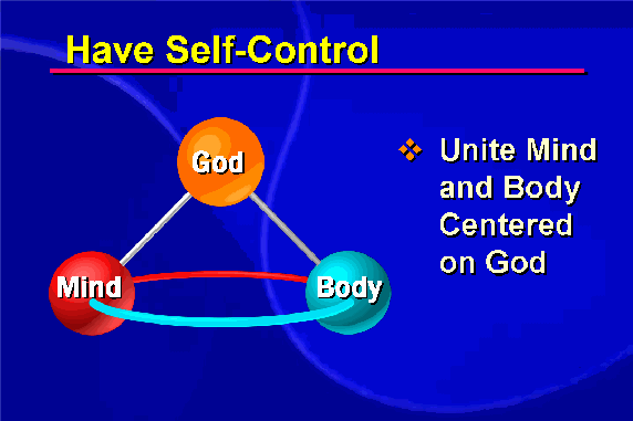 We must be able to have self-control -- uniting our mind and body centered upon God, making a conscious decision to live according to our highest values and principles.