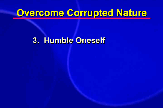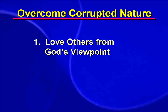 First, I must strive to see and love my adversary from God's viewpoint (overcoming self-centeredness). I must deny myself, my own point of view, my own feelings, and try to see things from a new perspective. Can I recognize the goodness inside of my adversary? Can I understand and even empathize with his or her feelings? How can I establish a common base with that person based upon a mutual desire for peace and harmony?.
