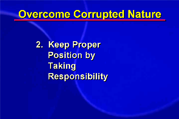 Second, I must understand and keep my proper position, which means to take responsibility for my actions. I admit to myself and others the wrongs that I have done. I no longer justify my bad behavior by pointing out the mistakes of my adversary.