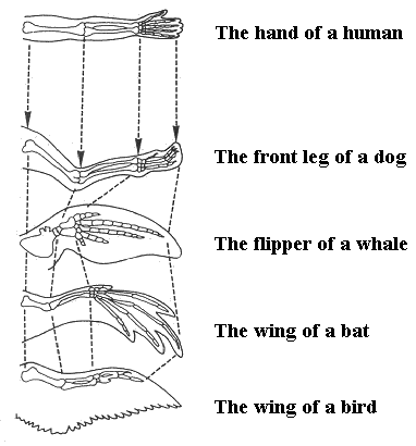 This latter [the tetrapod limb in vertebrates] is a classic textbook example of nature persuading one structure to do several jobs. Why should the legs of a horse, the wing of a bird, the arm of a man, and the flipper of a whale all be built the same way when serving quite different purposes? If the fittest adaptation were chosen by a gradual accumulation of mutations, you would have expected an organ used for flying and a organ used for running to have finished up-or even begun-looking totally dissimilar. (Hitching 1982, 149 -50)