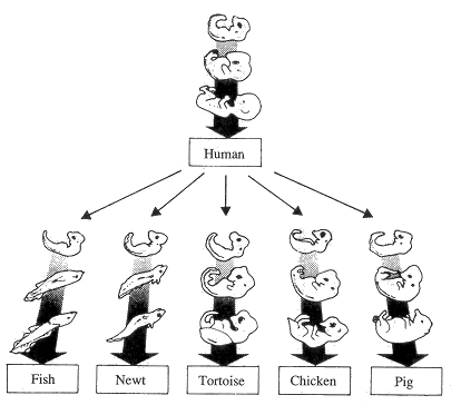 When the embryos of vertebrates are compared with one another, all of them resemble one another in their early stages of development: All of them have gill slits and a tail, and all have a fishlike heart with a single atrium and ventricle. Based on that, evolutionists claim that embryos, in the course of development, repeat the evolutionary history of their ancestors in some abbreviated form. This is the theory of recapitulation, advocated by E. Haeckel (1834-1919), according to which "ontogeny recapitulates phylogeny."