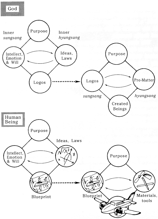 In the beginning, God conceived in His own image the image of the human being to be created. The image of the human being means the design of human being. And taking that image as the model, God conceived each one of all things by abstracting and transforming the human image.