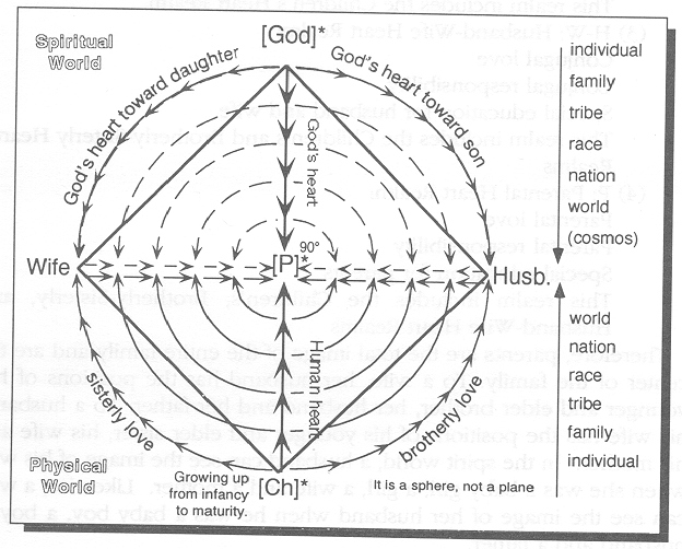 The grandparents represent God; parents, True Parents; children, all mankind. Therefore, the family is the microcosm and it should be governed by the grandparents, who are the vertical standard of tradition.