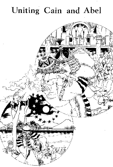Uniting Cain and Abel Now Joseph had a dream, and when he told it to his brothers they only hated him the more. He said to them, "Hear this dream which I have dreamed: behold, we were binding sheaves in the field, and lo, my sheaf arose and stood upright; and behold, your sheaves gathered round it, and bowed down to my sheaf." His brothers said to him, "Are you indeed to reign over us? Or are you indeed to have dominion over us?" So they hated him yet more for his dreams and for his words. Then he dreamed another dream, and told it to his brothers, and said, "Behold, I have dreamed another dream; and behold, the sun, the moon, and eleven stars were bowing down to me." But when he told it to his father and to his brothers, his father rebuked him, and said to him' "What is this dream that you have dreamed? Shall I and your mother and your brothers indeed come to bow ourselves to the ground before you?" And his brothers were jealous of him, but his father kept the saying in mind. . . . Then Joseph could not control, himself before all those who stood by him; and he cried, "Make every one go out from me." So no one stayed with him when Joseph made himself known to his brothers. And he wept aloud, so that the Egyptians heard it, and the household of Pharaoh heard it. And Joseph said to his brothers, "I am Joseph; is my father still alive?" But his brothers could not answer him, for they were dismayed at his presence. So Joseph said to his brothers, "Come near to me, I pray you." And they came near. And he said, "I am your brother, Joseph, whom you sold into Egypt. And now do not be distressed, or angry with yourselves, because you sold me here; for God sent me before you to ' preserve life. For the famine has been in the land these two years; and there are yet five years in which there will be neither plowing nor harvest. And God sent me before you to preserve for you a remnant on earth, and to keep alive for you many survivors. So it was not you who sent me here but God; and he has made me a father to Pharaoh, and lord of all his house and ruler over all the land of Egypt. Make haste and go up to my father and say to him, 'Thus says your son Joseph, God has made me lord of all Egypt; come down to me, do not tarry; you shall dwell in the land of Goshen, and you shall be near me, you and your children and your children's children, and your flocks, your herds, and all that you have; and there I will provide for you, for there are yet five years of famine to come; lest you and your household, and all that you have, come to poverty.' And now your eyes see, and the eyes of my brother Benjamin see, that it is my mouth that speaks to you. You must tell my father of all my splendor in Egypt, and of all that you have seen. Make haste and bring my father down here." Then he fell upon his brother Benjamin's neck and wept; and Benjamin wept upon his neck. And he kissed all his brothers and wept upon them; and after that his brothers talked with him.