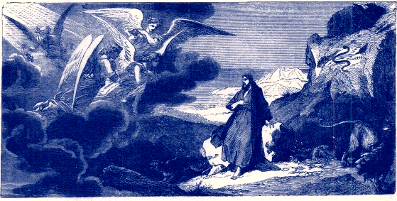Jesus replied, "Be gone, Satan! For it is written, 'You shall worship the Lord your God and him only shall you serve.'" Angels were created as ministering spirits to revere and serve God, their Creator. By his answer, Jesus indicated that according to the Principle, even a fallen angel like Satan should worship God; by the same token, he should honor and attend Jesus, who came as the body of the Creator... By prevailing in the third temptation, Jesus set up the condition to restore dominion over the natural world, God's third blessing.