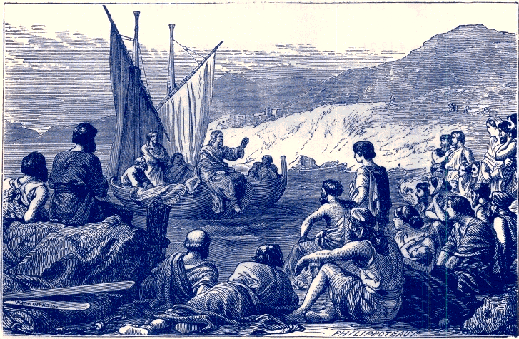 As Jesus was walking beside the Sea of Galilee, he saw two brothers, Simon called Peter and his brother Andrew. They were casting a net into the lake, for they were fishermen. "Come, follow me." Jesus said, "and I will make you fishers of men." At once they left their nets and followed him.
