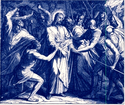 Now the betrayer had arranged a signal with them: "The one I kiss is the man; arrest him and lead him away under guard." Going at once to Jesus, Judas said, "Rabbi!" and kissed him. The men seized Jesus and arrested hint. Then everyone deserted him and fled.