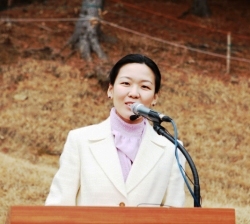 In the last year Yeon Ah Nim has been doing a lot of things. She moved her whole family from America to Korea, she is now teaching at Sun Moon University as professor teaching Sociology, as she has a Masters degree from Ehwa Women’s University in Sociology, and just recently Father asked her to be the Vice Chairman of Women’s Federation for World Peace. So, let’s give it up for Yeon Ah Nim. (Applause).