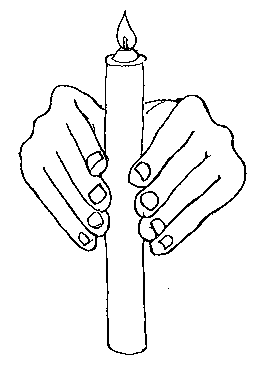 Figure 15-1 15.1. Hold a candle between two hands Walking down the row(s), the leader should light all candles from his or her Shimjung, Candle. Prayer. When the Shimjung Candles are burning, the leader should return to his/her place, face the members and pray, as follows: In the name of the Holy Father, Holy Son and Holy Spirit and True Parents, I want to bless these candles with the power and significance of the Shimjung Candle initially made by True Father passed through my Shimjung Candle. l pray that this be done through Your Will. In the name of the Holy Father, Holy Son and Holy Spirit and True Parents, I pray that You bequeath the power of the Shimjung Candle to each member here according to Heavenly Father's and True Parents' victorious foundation. Matches. Shimjung Matches are bestowed in the same fashion Father used. Each member in attendance may receive one box or book of matches. They may be sanctified in one of the three ways outlined above. (Refer to the section on "Preparing to Bequeath Four or More Candles.") Father put one of his Shimjung Matches in each of the boxes during the original ceremony he held. If it is possible, leaders should follow this same pattern, placing Shimjung Matches from boxes of multiplied matches in each of the boxes to be distributed, but not from their box of "seed" Shimjung Matches. The leader should bequeath Shimjung Matches by handing one book or box to each member. Inheriting Shimjung Candles and Matches How to Inherit a Shimjung Candle and Matches Members may inherit Shimjung Candles and Matches from leaders or spiritual parents who have previously received a Shimjung Candle and Shimjung Matches from an elder church member. Candles. Members must inherit their Shimjung Candle and Matches from a "seed" Shimjung Candle and Matches in person. The leader must (according to the description in the above section) bequeath Shimjung Candles and Matches by lighting the candle of each participant in the ceremony with his/her "seed" Shimjung Candle, and through the flame, pass on the significance of the Shimjung Candle tradition. Matches. As the leader bequeaths a box of Shimjung matches, it should be received with two hands (refer to chapter 1, Attendance: Accepting Gifts and Money, for the traditional method of receiving gifts.) Multiplying Shimjung Candles and Matches NOTE: This section does not explain how a member obtains his or her own "seed" Shimjung Candle and Matches. If a member has received them, this section will explain how to make more. Preparation Necessary Materials and Preparation. Candles and matches. In order to multiply a Shimjung Candle and Matches, three new candles are purchased (white or light yellow are the suggested colors), at least five or six inches in length (for convenience), as well as three new boxes or books of matches. Sanctify them with Holy Salt. Candle holders. Candle holders are also needed to perform this ceremony. They need not be new. If possible, at least one candle holder should be obtained (in which the "seed" Shimjung Candle will be placed). If candle holders are unavailable or too expensive, it is possible to use dishes and a separate candle (color is optional) and matches to make a wax base which will allow the candle to be upright during this procedure. (None of these items need to be new.) If dishes are used, take the separate candle and matches (not the new candles and matches to be multiplied), light it, and drip some hot wax on one dish. Before the wax completely hardens, place the "seed" Shimjung Candle in it, making sure the candle will stand securely. This procedure is then repeated with the candles to be multiplied, always using the separate candle and matches to produce the wax base. It is also possible to use small bowls filled with rice or beans to support the candles. Procedure. Candles. Shimjung Candles are multiplied three at a time. First a four position foundation is formed by placing the three new candles and the "seed" Shimjung Candle according to diagram 15.2. Then a prayer is offered, beginning with the following words, "In the name of the Holy Father, Holy Son and Holy Spirit, and True Parents, I want to multiply my Shimjung Candle . . ."