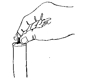 Figure 15-5 15.5. Replace "seed" Shimjung Candle in God's position Prayer. While the candles are burning, pray according to the following content: I would like to make these new candles become Shimjung Candles in the name of God, True Parents, and my name. Heavenly Father, I ask that You be here. Let the heart of True Parents who made Shimjung Candles and endowed them to their disciples be here now. Whenever these Shimjung Candles are lit, let the foundation of God's victory expand and chase the power of Satan away. Spread a heavenly atmosphere whenever they are lit. Matches Boxes or books of matches are also multiplied three at a time. According to diagram 15.2, the three new boxes/books of matches are to be placed in the different positions and the "seed" Shimjung, Matches placed in God's position. Offer a prayer beginning with, "In the name of Holy Father, Holy Son and Holy Spirit and True Parents, I want to multiply my Shimjung Matches . . ." Take the box of "seed" Shimjung Matches from God's position and briefly place it on top of each of the other boxes in the following manner: Adam, Eve, Child (indicated in diagram 15.4). Afterwards, place the box of "seed" Shimjung Matches in God's position once again (diagram 15.5). Offer a simple prayer if desired. [Page 121] If the "Seed" Shimjung Candle Becomes Too Short In the event that the "seed" Shimjung Candle becomes too short and is no longer able to be used to multiply more candles, keep it as a remembrance and simply use a previously multiplied Shimjung Candle to multiply more candles as needed. Extinguishing Candles Each candle should be extinguished in the same order it was lit (i.e., Adam, Eve, Child). End by extinguishing the "seed" Shimjung Candle . Father has taught us to extinguish candles between our two fingers (diagram 15.6). Use that method whenever possible. On some occasions, however, it is more appropriate to blow out candles (e.g., candles on a birthday cake).