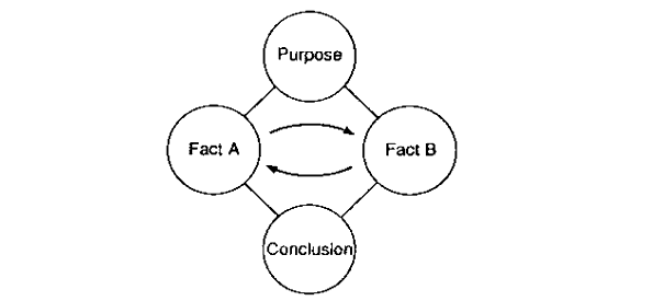 Aristotle's deductive method is based on the syllogism. First, an universal truth is proposed; then, a more limited truth is proposed; from those two, a specific conclusion is derived. In terms of the preceding example, one contrasts the major premise, "all men are mortal" with the minor premise, "Socrates is a man," and derives the conclusion, "Socrates is mortal." This is a contrast-type give-and-receive action between a proposition and a proposition.