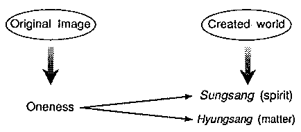 1. The Divine Image Our study of the attributes of God focuses first on their content and then on their structure. Content concerns each of the attributes, whereas structure refers to the mutual relationships among those attributes. The content can be further divided into those of Divine Image and Divine Character. Divine Image refers to the aspect of form among God's attributes, whereas Divine Character refers to the aspect of nature and ability. First, I will deal with the Divine Image. From the statement in Genesis that "God created man in his own image" (Gen. 1:27, Rsv), we can learn that God, though invisible, has the aspect of form. These are the dual characteristics of Sungsang and Hyungsang, the dual characteristics of Yang and Yin, and the Individual Images. A. The Attributes of Sungsang and Hyungsang Among God's attributes, we find the characteristics of Sungsang and Hyungsang. God's Sungsang is the cause of the internal, invisible aspect of created beings, and God's Hyungsang is the cause of the external, visible aspect of created beings. In God, Sungsang and Hyungsang form a harmonized body in the relationship of subject and object. Forming a harmonized body means that Sungsang and Hyungsang are not separated, but exist as a union, since they are united. In order to distinguish God's Sungsang and Hyungsang from those of created beings, God's Sungsang and Hyungsang are sometimes called Original Sungsang and Original Hyungsang. 1. The Original Sungsang The Original Sungsang, or God's Sungsang, is the part of God corresponding to mind and represents the fundamental cause of the invisible aspect, or functional aspect, of all created beings. The invisible aspect of created beings correspond to mind in human beings, to instinct in animals, to life in plants, and to physicochemical character in minerals. God's Sungsang is manifested in the created world in various dimensions, forming the different levels of invisible aspect. To specify, in minerals, God's Sungsang is almost dormant and manifests itself only symbolically. In plants, God's Sungsang manifests itself on a higher dimension. In animals, it manifests itself on an even higher dimension. In human beings, God's Sungsang manifests itself to the fullest degree. A further analysis of the original Sungsang shows that it contains the aspect of function and the aspect of form, which are called Inner Sungsang and Inner Hyungsang, respectively. The Inner Sungsang has the faculties of intellect, emotion, and will; and the Inner Hyungsang contains ideas, concepts, original laws, mathematical principles, and so forth. The Inner Sungsang is the subject part within the Sungsang and the Inner Hyungsang is the object part within the Sungsang. The intellect is the faculty of cognition; the emotion is the faculty of feeling -- the faculty to feel joy, anger, sadness, comfort, etc.; and the will is the faculty of volition the faculty to desire, to intend, to determine, etc. Furthermore, the intellect has the faculties of perception, understanding, and reason. Perception refers to the ability to receive representations, or images, triggered by an object. Understanding refers to the ability to make judgments by using concepts. Reason refers to the ability to infer by using concepts and to comprehend universal truths and the essence of things. For example, consider the incident that allegedly took place when Isaac Newton (1642 - 1727) discovered the law of universal gravitation. Through the working of his perception, Newton learned that an apple had fallen from the apple tree. Through the working of his understanding, he made the judgment that the apple had fallen because it had been attracted by some force. Finally, through the working of his reason, Newton inferred that the reason the apple had fallen was that there exists universal gravitation. In saying this, however, I do not mean that God engages in logical thinking by His understanding based on His perceptive recognition, and further, based upon that, engages in comprehensive thinking by His reason. Within God's intellectual faculty, the three functions of perception, understanding, and reason exist in oneness, but when they manifest themselves in human beings, they come to be differentiated into the sequential stages of perception, understanding, and reason. Next, I will discuss the Inner Hyungsang. The Unification Principle says that "though the internal character [Sungsang] cannot be seen, it assumes a certain form. . . ."2 This indicates that within the Sungsang there already exists an element of form, namely, the Inner Hyungsang. The Unification Principle also states that "the Hyungsang may be called a second Sungsang." This means that the form within the mind (the Inner Hyungsang) appears as the external form (the Original Hyungsang). When we see a flower, a bird, or a mountain, the images of what we see remain in our mind. From those images we derive ideas or concepts. In the case of human beings, the idea or concept of something appears in our mind only after we have experienced it. 4 God, however, already possessed ideas and concepts even before creating the universe. It is written in Genesis that when God said, "Let there be light," light did appear, and when He said, "let the dry land appear," dry land did appear. After God proclaimed that something should exist, "it was so" (Gen. 1:3-9, Rsv). This means that everything turned out exactly as God had conceived it or thought about it. Therefore, when God created the universe, He already had ideas and concepts, and according to those ideas and concepts, He created the universe. Ideas and concepts here are images, or representations, within the mind. Ideas are concrete representations of individual created beings, and concepts are representations of the common elements abstracted from many concrete things. Plato (427-347 B. C.) claimed that non-material ideas are the true reality. It call be said that Plato grasped the ideas and con