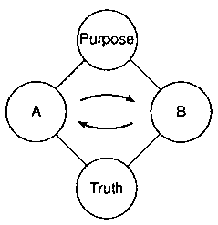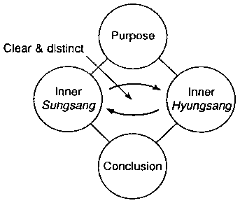 Fig. 11-4: The Socratic Method of Dialogue 4. Plato Plato studied the world of Ideas. In the human inner Hyungsang there are various concepts, and by analyzing and synthesizing them, Plato tried to clarify a hierarchy of Ideas. The analysis and synthesis of concepts are carried out through the comparison of concepts. This is a contrast-type of give-and-receive action. Since this is carried out within the mind, it is inner give-and-receive action. In the end, it can be said that Plato advocated the method of the search for truth through the contrast-type inner give-and-receive action (Fig. 11-5).