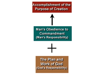 In the beginning, God gave the first human ancestors a commandment which they were to observe until their perfection. The purpose of creation was to be accomplished not simply by the plan and workings of God, but by man fulfilling his comparatively small portion of responsibility, obeying God's commandment. In order to fulfill the purpose of creation, man's effort is as absolutely essential as God's.