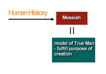 In God's providence, He must first restore a true man to accomplish His purpose of creation and through him restore a family, society, nation and world of His ideal creation. God sends the Messiah to the world as a model of a true man.