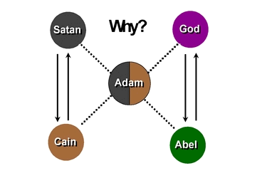 However, in actuality, Cain killed Abel and repeated the process of the fall of the archangel. This act was not simply the crime of an elder brother murdering his younger brother, but it meant that the satanic side had struck God's side, frustrating God's effort to separate good from evil in Adam's family, and losing the side of goodness.