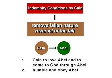 Then what was this condition of indemnity? Because Cain had the fallen nature, he could not be the object of God, who is the subject of goodness. He had to establish some condition to remove this evilness within him so that he could become a person to whom God could respond.