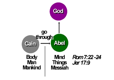What Cain failed to achieve was the necessary basic condition of indemnity for any individual separated from God to come nearer to God; thus, that condition remained to be fulfilled. Observing this principle within ourselves, our mind, which directs us toward goodness (Rom. 7:22) is in the position of Abel, while our body, tending to serve the law of sin (Rom. 7:25), is in the position of Cain. Consequently, only when our body obeys and is subjugated by our mind will our individual body be made pure (sinless). However, in reality, because of the dominance of our fallen nature, our body always rebels against the command of our mind, repeating the same actions as when Cain killed Abel. Therefore, we continue to do evil.