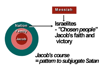 Jacob's course set the pattern for the subjugation of Satan and this pattern was to be followed by Moses and all other prophets -And because a nation must also follow this pattern, the history of the Israelite nation shows the model course which a nation must go through in the national level providence; for this reason, the history of the Israelites until the coming of Jesus is the central focus of the providential history.