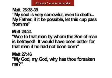 In the Garden of Gethsemane, Jesus prayed, "My soul is very sorrowful, even to death ... My Father, if it be possible, let this cup pass from me" (Matt. 26:36-38). Jesus uttered this prayer, not once, but three times. Many Christians today believe that although his mission was to die on the cross, Jesus, out of human weakness, uttered this timid prayer. But, could Jesus Christ, the savior of mankind, utter any prayer out of weakness?