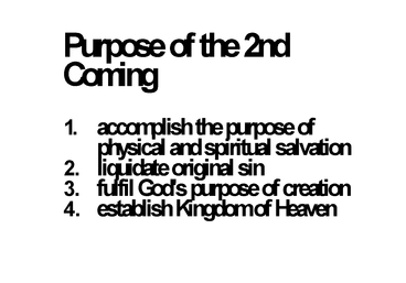 Therefore, the Lord must come again to completely liquidate the sins that remain and to establish the Kingdom of Heaven on earth, the purpose of God's creation.