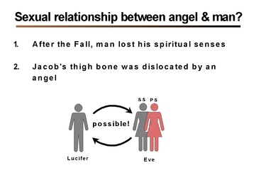 How is it possible for sexual relations to occur between an angel and man? Because of the great deterioration of man's spiritual perception due to the fall, this seems difficult to understand. However, there are many examples in the Bible that illustrate the possibility of substantial contact between men and angels. One example is that of Jacob wrestling with the angel, when the angel dislocated Jacob's thigh bone (Gen. 32:25).