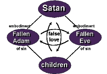 However, Adam and Eve, who were still growing toward perfection, fell as a direct result of unprincipled love with the archangel. God, the author of the Divine Principle, was excluded and instead a four position foundation centering around Satan was formed, with Satan acting as the false master.