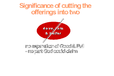 Why was it such a sin, deserving of such punishment, not to cut the doves in two? The entire purpose of the providence of salvation is to separate good from evil in men and in the world, so as to destroy the evil and preserve the good, and eventually restore the purpose of creation. Therefore, that which is not divided in two remains belonging to Satan and leaves no part which God can claim. Accordingly, Abraham's offering was given to God externally, but internally it was given to Satan, and thus it became sinful.