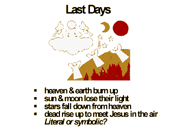 Or, like in many parts of the Bible, are these symbolic or metaphorical? Let us examine these prophecies of the Last Days, keeping in mind the purpose of God's creation, the facts of the fall, and God's purpose of restoring this fallen world.