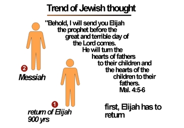 Elijah was one of the great prophets of Israel who lived 900 years before the coming of Jesus, and had ascended into heaven on a chariot of fire. The Israelites' longing for the Messiah was indicated by their expectation for the arrival of the historical prophet Elijah. This was because the Old Testament did not clearly foretell when the Messiah would come, but did clearly indicate that Elijah would come before him.