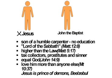 How did Jesus appear to the people? Jesus was known only as the son of a humble carpenter and was not even well schooled. Yet Jesus proclaimed himself the lord of the Sabbath (Matt. 12:8), held himself as the one who was higher than the Law (Matt. 5:17), and became the friend of tax collectors, prostitutes and sinners, even eating and drinking with them (Matt. 11: 19). He equated himself with God (John 14:9) and told the people they had to love him more than anyone else (Matt. 10:37). Thus the Jewish leaders went so far as to claim that Jesus was possessed by Beelzebul, the prince of demons (Matt. 12:24).
