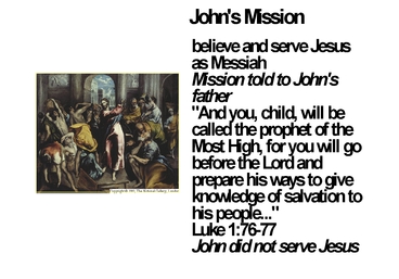 Even John's father was told of the mission of his son upon his birth: "And you child, will be called the prophet of the Most High, for you will go before the Lord to prepare his ways, to give knowledge of salvation to his people. . . (Luke 1:76-77). However, we cannot find any instance in the Bible where John the Baptist actually served Jesus.