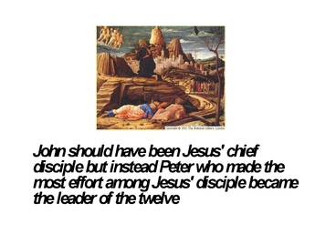 If John the Baptist had served Jesus well, fulfilling his responsibility, he would have become Jesus' chief disciple, but because he failed, Peter, who made the most effort among Jesus' disciples, became the leader of the Twelve.
