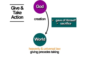 As the term give and take implies, the action is first giving, then receiving, not taking, then giving. The very fact that God created means that He had to give of Himself in order to bring about the creation-in other words, He had to sacrifice Himself for His creation.