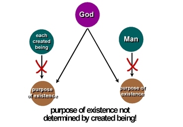 The purpose of existence is not determined by the created being itself; the true purpose is determined by its creator. Therefore by finding out what God's purpose of creation is, we can then understand the true purpose of man and the universe.