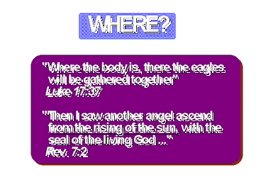 When asked where he would come again, Jesus replied symbolically in Luke 17:3, "Where the body is, there the eagles will be gathered together." Jesus did not specify which country. In Rev. 7:2-4 it is recorded that an angel ascended from the rising of the sun and sealed the chosen servants of God on their foreheads, the number of those being 144,000.